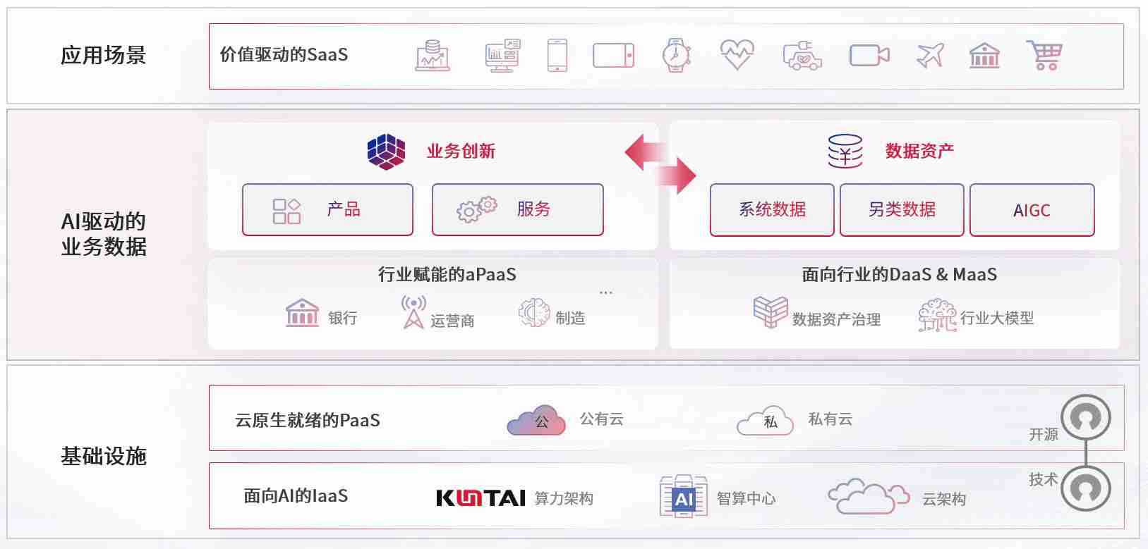 数字时代,,,围绕企业数字化转型的关键要素,,GA黄金甲数码开创性的提出数云融合战略和技术体系框架,,着力在云原生、、数字原生、、、、AI原生和信创产业上架构产品和服务能力,,为处在不同数字化转型阶段的快消零售、、、汽车、、、金融、、、、医疗、、政企、、、教育、、运营商等行业客户提供泛在的敏捷IT能力和融合的数据驱动能力,,构建跨界融合创新的数字业务场景和新业务模式,,,助力企业级客户建立面向未来的核心能力和竞争优势,,,全面推动社会的数字化、、、、智能化转型升级。。。。